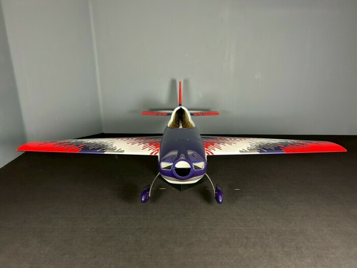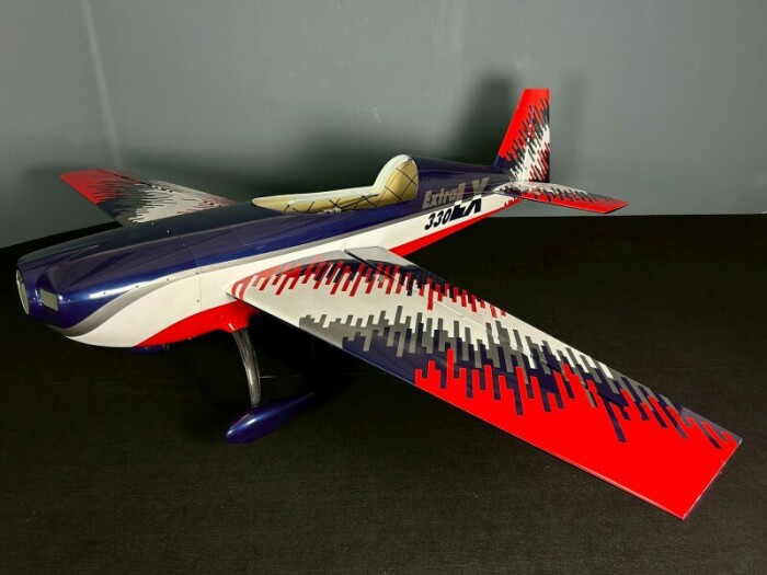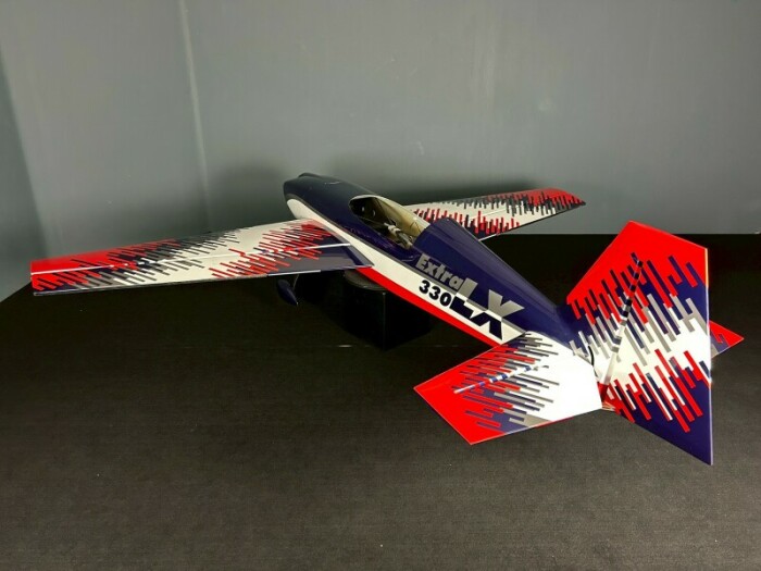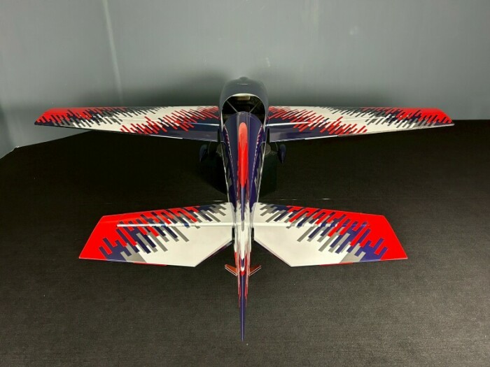 That is Alex's new competition machine. Matching the new scheme on his Mephisto, we rendered this to fit the Extra like a glove. The deep metallic blue with the white, silver and red make a fatastic contrast in the sky. This scheme is now in regular production. Feel free to request a color swap if you wish, we have tried various combinations and the great thing is that it works with so many different colors. Get CREATIVE...!