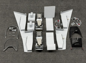 The air intakes are also highly pre-fabricated. Not only are the internal ducting and detailed external parts securely bonded together, but they also come equipped with mounting points for a perfect fit. The Hawk is not designed for a fully enclosed duct system. The added weight and the positioning of the fuel tank would far outweigh any potential benefits. However, a carbon fiber bypass for turbines ranging from 160 N to 200 N is included.