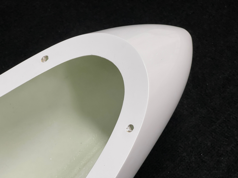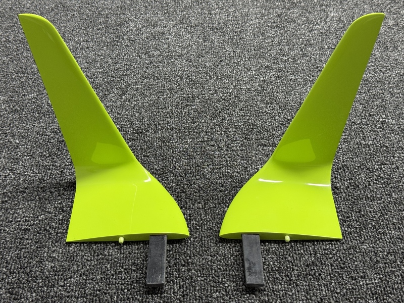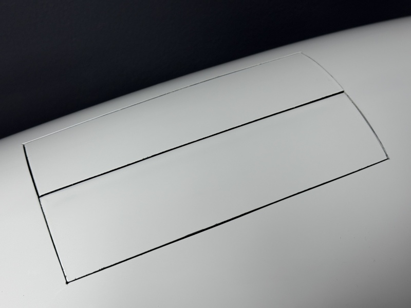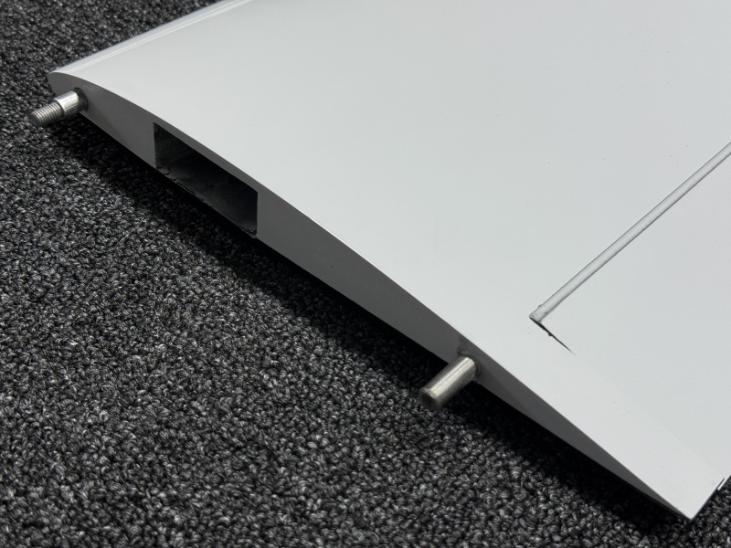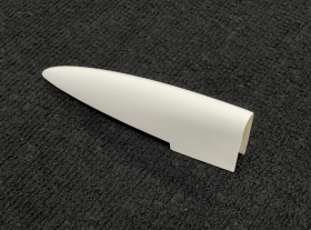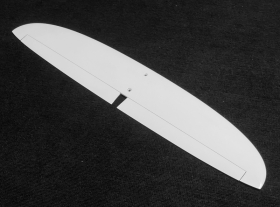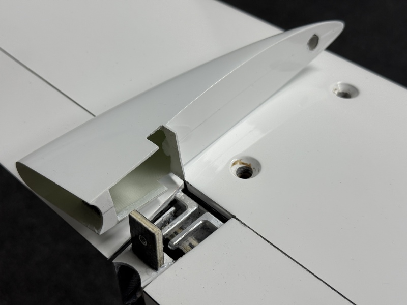 The horizontal stab in 'T' configuration has a split elevator, which is controlled with 2 servos mounted in the rudder post. The mounitng of the stab is done by two countersunk M6 bolts which are covered by the fin tip cover. The fin tip cover gets an M3 bolt from the rear and the front will be held in place by a magnet connecting to the front countersunk bolt. With this cover the tail gets a clean look.
