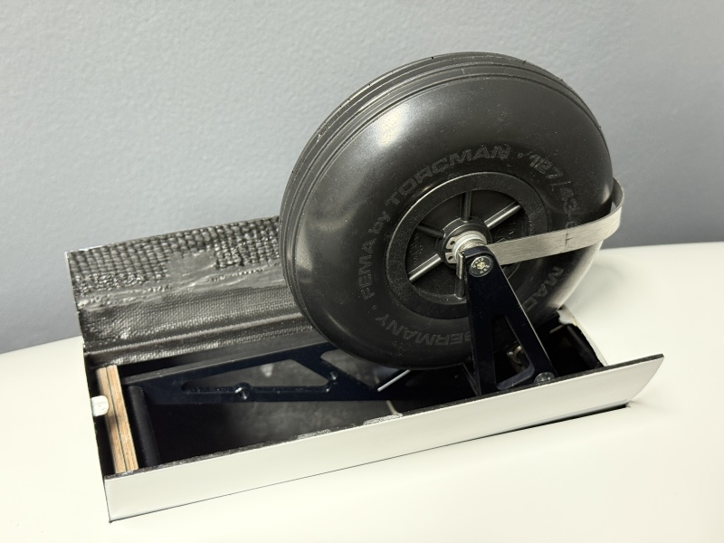 The GP-15's main gear has the Ceflix typical retract system. It retracts back up into the fuselage to reduce the aerodynamic drag during the flight. Equipped with a Fema wheel it is made for landings at nearly every terrain. The 400g light landing gear is one of the strogest and most durable retracts out there and amazes with high quality craftmanship by Ceflix.