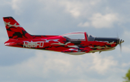 It’s an outstanding sport aircraft, featuring large wings, a tricycle retractable landing gear, and a spacious cowling that accommodates a wide variety of engines. The external fuel tanks also give it a very distinctive look.
